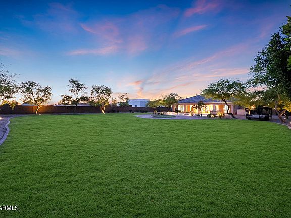 Functionality meets style in the large laundry room, equipped with ample cabinetry, a sink, and granite countertops. Outside, the expansive covered patio is an entertainer's dream, featuring a built-in BBQ, a vast grass area, and a stunning pool, perfect for Arizona's sunny days. Also, the backyard is a coveted irrigated lot.