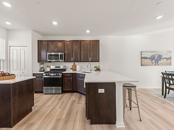 If you are looking for move in ready and better than new you will love this low maintenance urban townhome! The Chatham model features a beautiful Foyer with wrought iron railings. The modern Kitchen with center island and breakfast bar opens to the Dining and Living room. This functional Kitchen offers plenty of counter space, a pantry, quartz counters and loads of light! The open floor plan allows for easy entertaining! You can expand your Dining area to accomodate a large crowd! The Family Room has two large windows plus a patio door exiting to the balcony. Upstairs there are 3 bedrooms including the spacious owners suite with a generously sized walk in closet, tray ceiling, private bath with dual sinks and tub with separate shower. Two additional bedrooms with generous sized closets. The finished lower level can be used as a home office, play room or a rec room. Enjoy peace of mind with the 10 year structural warranty in this Lennar home built in Prairie Commons. You will enjoy a Ring Video Doorbell , Honeywell Smart Thermostat, 200 amp electrical service, garage door opener with remotes and keypad, GE Stainless Steel appliances, 9' ceilings on main floor, decorative stair railings, painted two panel interior doors, 42" kitchen cabinets, quartz kitchen counters, and luxury vinyl plank flooring. Newer blinds through-out. Prairie Common is minutes from shopping and very convenient to I-88. This community has access to walking paths! Everything is two years new!!!