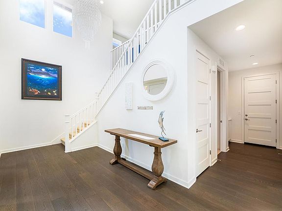 Located just a mile from Carlsbad Village and moments from the beach, this stunning home, built in 2020, blends modern luxury with coastal living. This 4 bedroom, 3.5 bathroom property features a main home with 3 bedrooms/2.5 bathrooms, and a 1 bed/1 bath ADU with its own entrance, living space, kitchenette, and bath, offering incredible flexibility for guests, multi-generational living, or rental income potential. The main residence also includes a flexible bonus room off the kitchen that can serve as an office, gameroom, or 5th bedroom. Two expansive trifold doors in the main living area seamlessly blend the indoor and outdoor spaces. The backyard is a true oasis, designed for relaxation and entertaining alike. Enjoy the sparkling saltwater pool, unwind in the hot tub, or gather around the fire pit or covered patio—all surrounded by lush landscaping. The thoughtfully designed floor plan includes a spacious first-floor primary suite, complete with a spa-like bathroom featuring a soaking tub, walk-in shower, and an oversized closet. The gourmet kitchen features stacked cabinets, a farmhouse sink, double ovens, and a spacious island perfect for gathering. The great room is warm and inviting, with high ceilings, a cozy fireplace, and elegant wood flooring throughout. Upstairs, two additional bedrooms, a full bathroom and a cozy loft area provides additional living space. Additional highlights include a spacious three-car tandem garage and owned solar panels for energy efficiency. With highly rated schools, parks, and the vibrant coastal lifestyle of Carlsbad at your doorstep, this is a rare opportunity to own a modern, sophisticated home in one of the area’s most desirable locations.