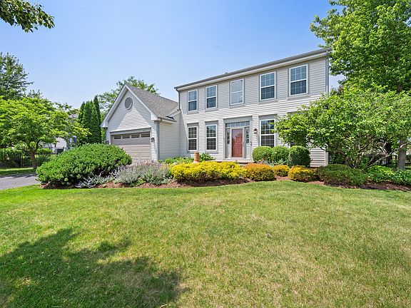 YOUR FOREVER HOME AWAITS WHERE EVERY ROOM TELLS A STORY! Welcome to a home that speaks to the heart. Nestled in a serene setting with a tranquil pond view and beautifully landscaped, fenced-in yard, this spacious 5-bedroom, 2.5-bath haven offers the perfect blend of charm, comfort, and functionality, all in a location close to everything you need. The lovely brick paver sidewalk and patio area and porch, will bring you into the gracious two-story foyer that sets the tone for the warm, inviting spaces that follow. Entertain in style in the formal dining room and living room, or relax with family and friends in the family room just off the large eat-in kitchen, complete with abundant maple cabinetry, generous counter space, a pantry closet, and all appliances are included. Creating your favorites here will be a pleasure! The heart of the home is where memories are made, and this kitchen was designed for both daily life and festive gatherings. Off the kitchen is a butler's pantry, giving you that extra space while entertaining. The 1/2 bath is conveniently located on the main level, and the laundry room with a sink gives access to the 3-car garage. A true standout, the four-season sunroom, featuring a charming wood-burning stove, beckons year-round enjoyment and seamless connection to the beautiful outdoors. Upstairs, you'll find the master suite with a full bath, including a separate shower, soaking tub, vanity with two sinks, and a walk-in-closet. Three more nice-sized bedrooms with closets, and an additional full bathroom complete this level. The finished basement extends the home's versatility with a recreation room, and 5th bedroom featuring an egress window and closet, ideal as well as an office, workshop, or creative studio. Storage space won't be a problem as there is a utility room, and crawl spaces. Step outside to discover a combination of brick paver patios and a pergola, all surrounded by thoughtful landscaping and nature's beauty. There's even the addition of a sweet playhouse! Imagine relaxing in the sunroom or on the patio with the peaceful view of the pond and western skyline! Located near schools, shopping, restaurants, downtown, and with easy access to I-88, this home truly has it all-space, style, comfort, and convenience. Abundant windows, ceiling fans, and lights throughout as well as several transoms! The sellers have loved this home since they built it! Now it's your turn to make it your own! Don't miss your chance to live in a place where every corner feels like home. Schedule your private showing today!