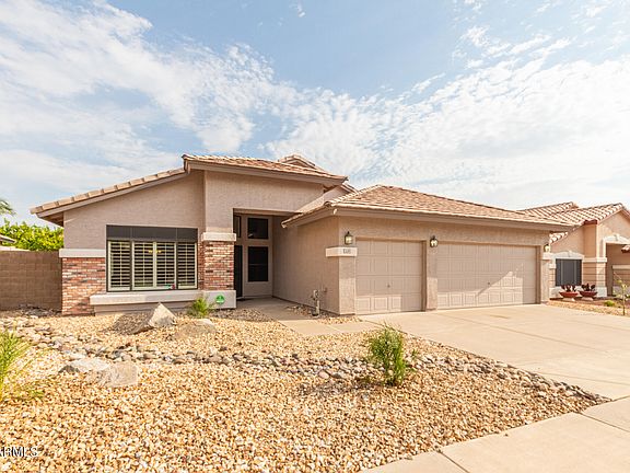 What a GEM! This gorgeous home in Scarlett Canyon will surely impress you! Providing 3 beds + den, 3 baths, a 3-car garage, and a low-care landscape. Fabulous interior showcases vaulted ceilings, abundant natural light, warm palette, plantation shutters, and stone tile flooring w/carpet in all the right places. You'll LOVE the formal living/dining room and the open-concept family room w/wood-look floors! The fully equipped kitchen boasts granite counters, track lighting, a pantry, ample wood cabinetry, stylish wall accents, and an island w/breakfast bar. The cozy den, with dual entries, provides versatility! Large double-door main bedroom has patio access and an ensuite with dual sinks, separate tub/shower, & a walk-in closet. Secondary bedrooms shared a Jack & Jill bathroom w/dual sinks. If entertaining is on your mind, the resort-style backyard awaits you! This space promises year-round enjoyment, featuring a sparkling pool, covered patio, artificial turf, elevated paver patio w/fire pit, and BBQ grilling station under the pergola. Located in the peaceful Community adjacent to the PHX Mountain Preserve, offering convenient access to numerous hiking and walking trails. Move-in ready! Just WOW!