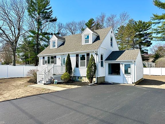Attractive Cape Cod w/A Dormers features: 6 Rooms, 3 Bedrooms, 2 Full Baths. Open Concept 1st Floor with Main Bedroom with large closet / Newly finished Hardwood Floors / Recessed Lighting / Mini-Split Air Conditioning & Heat / Country Kitchen with Gas Stove & Granite Countertop / 1st Floor Full Bath with Laundry connections / 2nd Floor features: 2 Bedrooms with newly finished Hardwood Floors and storage under eaves; and a Full Bath. Full basement with exterior access. Rear SunDeck overlooks beautiful rear yard with new vinyl fence. Side and rear enclosed porches. Newly installed driveway and hydroseeded lawn. Close to MBTA Commuter Rail, Shops and Restaurants.