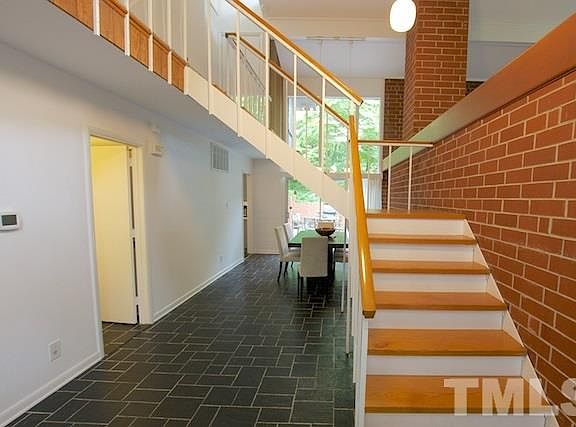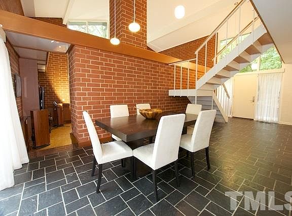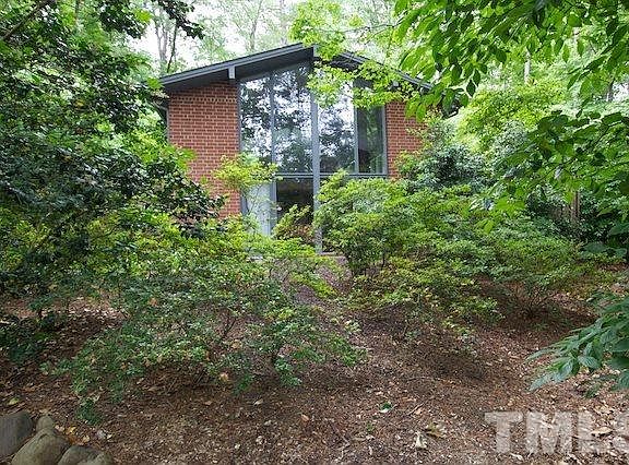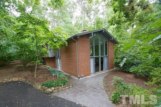 Designed by Kenneth Scott AIA, completed in 1961, this home was featured on the 2014 NC Modernist Homes Tour. The soaring great room with a west-facing wall of windows embraces the lush greenery and dappled light of this lovely wooded Duke Forest Lot. Large at-grade patio enables indoor/outdoor living & entertaining. Slate, hardwood & tile floors emphasize the sleek clean lines, while the warm tones of the brick bring a coziness to the space. Even the new master shower has tree-top views. Stunning.