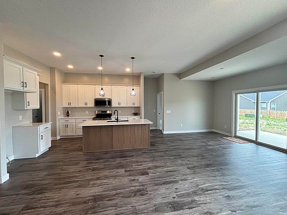 This is another Tom Schmucker & Sons home that is loaded with nice extras. Large greatroom with 10' ceilings oversized transom windows opens into the spacious kitchen with custom cabinetry, dove-tailed and soft-close drawers. You'll love the large corner pantry, upgraded appliances including stove with convection oven and dishwasher with stainless steel tub. This split bedroom design is sure to please. The Master Suite bath features tiled shower, double vanities and a huge closet. Other features include Andersen windows, rounded drywall corners, 50 gal HWH, Hi-efficiency furnace and pull-down attic stairs and floored attic. You'll be sure to enjoy both the large covered front porch plus a covered patio with ceiling fan. The back covered porch is footered and could be screened or enclosed. The oversized 3 car garage is 25 x 33 and has a window for natural light and floored attic with heavy-duty pull-down attic stairs. Just completed and ready for immediate occupancy. Stop and take a look at this one.