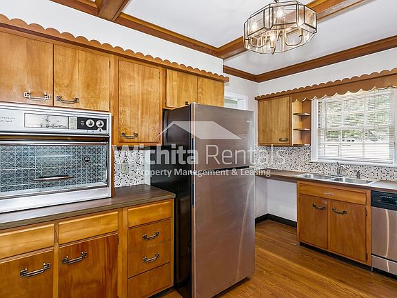 This quaint Riverside home displays high levels of detail and customized craftsmanship. Interior main level highlights include: beautiful stained glass windows, 2 bedrooms, 1 bathroom, living room with a wood burning fireplace, dining room that features custom built in china cabinets that light up. Hardwood floors throughout. Kitchen has stainless steel appliances: surface burner, oven, dishwasher, refrigerator with an icemaker and a garbage disposal. Upstairs includes a very large bedroom with a bonus room and bath. Basement features an open concept family room/dining room with a wood burning fireplace, office with a wet bar and utility area with washer/dryer hookups. For convenience the four car garage is attached to the enclosed breezeway so you do not have to contend with weather elements and the breezeway also provides another bonus room for your enjoyment. Privacy fenced in large back yard and a underground sprinkler system. This home is a must see!!