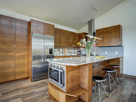 High performance and energy efficient solar home with stunning mountain views in popular North West Bend. Earth Advantage Platinum & Energy Trust Certified home. Brand new custom contemporary home with open floor plan that is designed to easily add a third bedroom. Great room with fireplace and efficient kitchen with European SS appliances and dining area. Great outdoor living with 3 tier decks. Spacious master suite with walk-in closet, Italian tile, cork/tile flooring & private elevator! 98% efficient gas furnace with AC, tank less gas water heater, LED lighting, EV plug & roof top solar system with battery back-up!! Immerse yourself in a low impact & healthy life style with this perfect residence or vacation home.