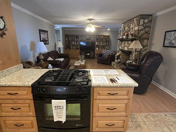 Large gas fireplaceUtility sinkBrick homeRv parkingCozy family roomUpdated kitchenGas stove