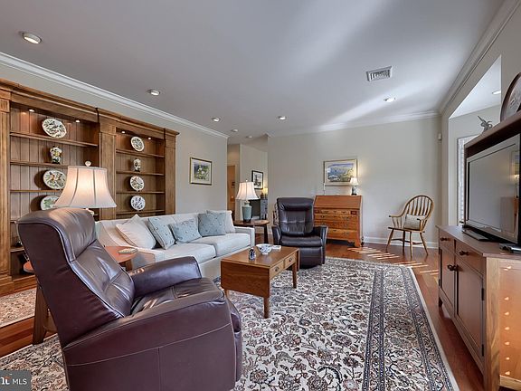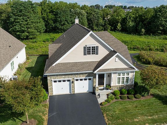 Welcome to this beautifully appointed 2 bedroom, 2 bathroom home in the 55+ community of Village Grande, offering the ease and comfort of main-level living. Step inside to an inviting entryway that opens onto gleaming hardwood floors, leading to a light-filled living room adorned with crown molding, oversized windows, and intricate wooden built-in shelving. The spacious eat-in kitchen is a chef’s delight with granite countertops, a large center island, GE stainless steel appliances, and a walk-in pantry with custom shelving, seamlessly flowing into the attached dining room highlighted by exposed beams, ceramic tile flooring, and a cozy gas fireplace framed by built-in cabinetry. From here, access the back deck and take in breathtaking panoramic views of the wildflower-filled field behind the home, with a community walking and biking trail just steps away. An elegant home office with hardwood floors provides the perfect place for productivity, while the primary suite impresses with two walk-in closets, hardwood flooring, and a spa-like ensuite featuring a dual-sink vanity and expansive tiled walk-in shower. A guest bedroom and full bathroom with a tub shower offer comfortable accommodations for visitors, and a laundry/mudroom with a utility sink and cabinetry adds everyday convenience. The unfinished lower level provides endless possibilities to create additional living space, while the oversized 2-car garage ensures abundant storage. Nestled at the end of a tranquil cul-de-sac, the property boasts lush landscaping and a stone retaining wall, combining privacy with charm. As a resident of Village Grande, you’ll also enjoy access to community amenities including the clubhouse, pool, tennis courts, and more. Don’t miss the opportunity to make this stunning home yours; schedule a private showing today and experience it all for yourself!