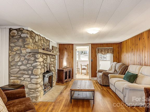 This 3-bedroom, 2-bathroom farmhouse-style home sits on over half an acre along scenic Soco Road. It’s older in character, with rustic appeal and a warm, lived-in feel—move-in ready but ideal for buyers who want to update over time. Inside, the home features hardwood floors, a large rock fireplace, and a cozy sunroom that looks out over the private backyard. The kitchen carries vintage charm, functional as-is or ready for your redesign.