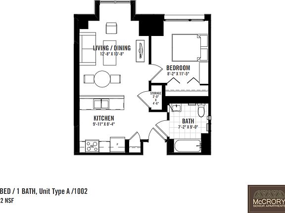 A variety of floor plan styles are available in a mix of 48 one-bedroom and 14 two-bedroom units. Each apartment includes an abundance of desirable green features designed to provide residents with energy cost savings. The building offers residents a large community room with a fitness room, multimedia theater, rear patio, and professional landscaping. Seniors looking for location, energy efficient features, a healthy living environment, and reasonable rental rates, will find McCrory Senior Apartments a great place to call home.