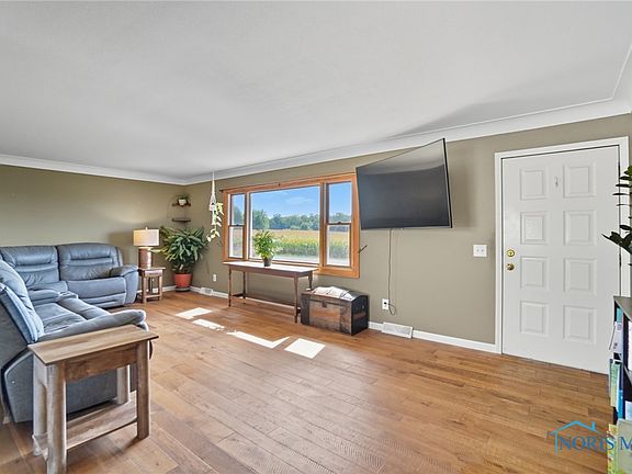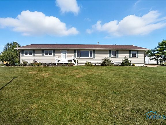 Welcome to country living! Situated in Wauseon, this stick-built ranch home features 4 bedrooms, 2 full baths, 1344 sq ft, and a full basement with an egress window and kitchenette. The property encompasses over 5 acres of land, complete with an attached garage featuring a wood-burning stove, a shed for additional storage, and a peaceful setting with various trees, including apple, pear, and peach. A chicken coop and expansive front porch and deck are also included. Schedule your showing today!