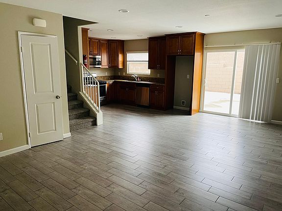 Beautiful two story townhouse in Fontana for lease! Step into the front door of this 3 bedroom 2.50 bathroom townhouse that features 1500 square feet of living space! The main level features a family room, half bathroom, nice size walk in closet, dining area and nice size kitchen. The kitchen includes the latest stainless steel and black appliances, beautiful custom European style cabinets and granite countertops. The main level also features modern wooden floors and earth toned walls throughout. Upstairs offer a generous size carpeted primary bedroom, bathtub / shower sink, a walk in closet and a small balcony. Upstairs hallway features wooden floors, a nice size laundry room with all the washer and dryer hookups. There is also a panel for inside the lauded room for the wifi internet hookups. The end of the hallway also featured a nice balcony facing the front of the townhouse community / complex and the beautiful Fontana hills / landscape. There is also two additional bedrooms and a full bathroom upstairs. The backyard is nice sized, completely concrete and allows one to make it their own oasis. The garage also includes custom cabinets (for added storage) an automatic two car garage door and opener. You don't want to miss out on this great property!