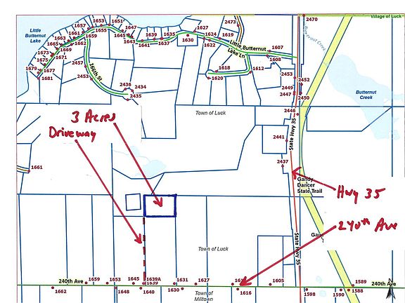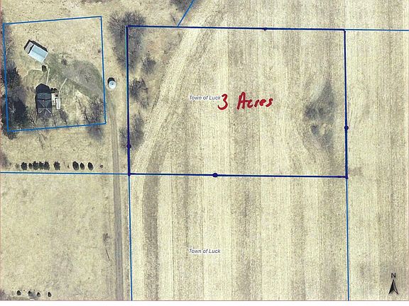 In rural Polk County lies a 3 acre building site. It has a drilled well and a septic holding tank installed. Great soil conditions for a drainfield. There is Fiber optic and phone available right at the lot line. There is a shared driveway already in place. It's just outside of Luck with incredible views! You are within 5 miles of over 15 great fishing Lakes! Minutes from Luck, 5 minutes from Milltown, 20 minutes from balsam Lake and St Croix Falls.. One hour from Hudson Wisconsin and the Twin Cities!