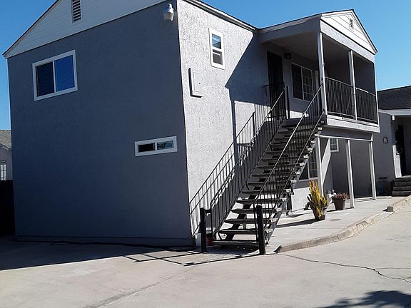 This is an upstairs unit with large balcony, located at the rear of the property. Entire lot has only three units with quiet, respectful, pleasant occupants. This unit is very clean, quiet, and privately situated. Off-street parking available at rear of property; renter of this unit would be assigned one parking stall. Shared pay washer and dryer on premises. Recently renovated with kitchen appliances, bathroom, windows, ceiling fans, A/C unit. Large bedroom and closet space; separate linen and coat closets. Located near many stores, gas stations, and laundromats within a five minute drive. Very close access to the I-5, I-805, and State Route 54. Great find for a competitive monthly rate.