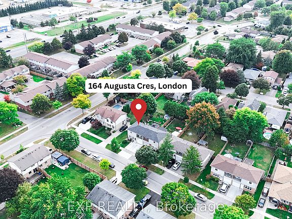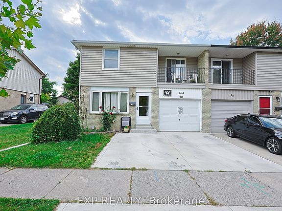 Attention First Time Home Buyers or Savvy Investors! Welcome to 164 Augusta Crescent London ON, perfectly located in the heart of White Oaks. This inviting 3-bedroom, 1.5-bath semi-detached home is designed with families in mind. Balcony off the Master Bed Room. Inside entry through garage is also available. Enjoy being close to schools, shopping, community centres, the library, public transit, 401 and more. Recent updates include laminate vinyl flooring (2025) and shingles (2020), adding extra value and peace of mind. Living Room window and kitchen window replaced in 2024. Single car garage with 2 vehicle driveway is an added feature. Life time, money back warranty and transferable Leaf Filter Gutter Protection installed in 2024. Don't miss the opportunity to make this beautiful home yours!