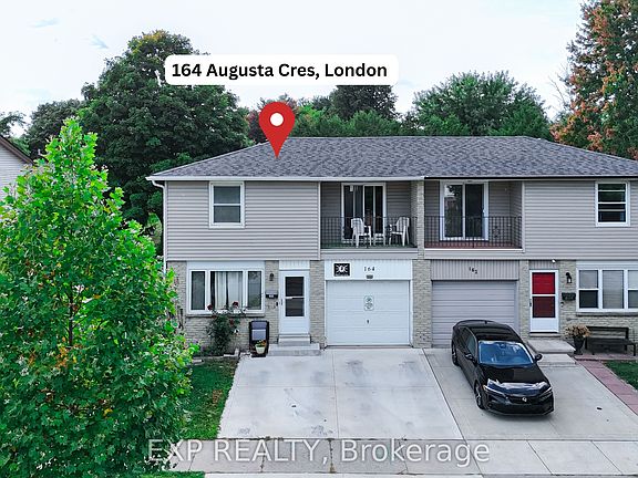Welcome to 164 Augusta Crescent London ON, perfectly located in the heart of White Oaks. This inviting 3-bedroom, 1.5-bath semi-detached home is designed with families in mind. Balcony off the Master Bed Room. Inside entry through garage is also available. Enjoy being just minutes from shopping, community centres, the library, public transit, and more. Recent updates include laminate vinyl flooring (2025) and shingles (2020), adding extra value and peace of mind. Living Room window and kitchen window replaced in 2024. Single car garage with 2 vehicle driveway is an added feature. Don't miss the opportunity to make this beautiful home yours!