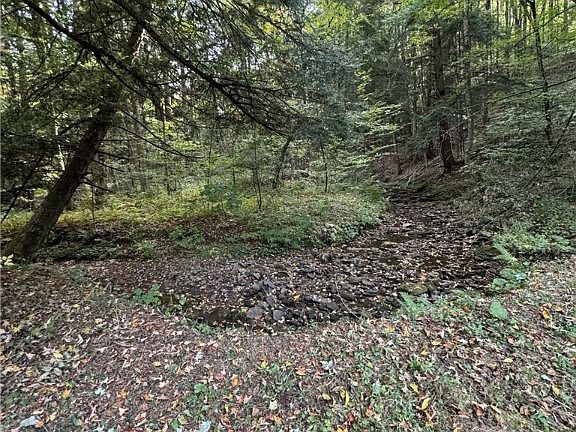 Private camp/home with stream running along the side of the property. Walking distance to the State Game Lands for hunting, fishing in the Potato Creek and various ATV/Snowmobile trails throughout. The home has a covered front porch to enjoy the wildlife wandering through out. First level consist of the large fireplace. Full bathroom. Second level is currently set up as several beds for hunting purposes. Level lot. Gravity fed spring with the valves under the kitchen sink. There is a oil furnace under the stairway, woodstove in the kitchen and the fireplace has an insert where a heat pump heats the radiators. Only one heat source is needed to make this home comfy. Private.