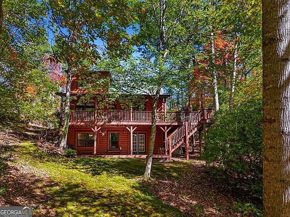 Escape to your own private oasis with this stunning 2-bedroom, 2-bathroom mountain retreat nestled on a elevated wooded lot, just minutes from town. Perfectly blending rustic charm with modern comforts, this home is an ideal getaway or year-round residence. The spacious master suite on the main level offers single-level living with a generously sized bedroom and full bathroom, complete with ample natural light and tranquil views. The fully finished basement features a versatile second bedroom and full bathroom, perfect for guests, an office, or a cozy family retreat. Upstairs, an open loft area provides a charming space for a reading nook, home office, or additional sleeping area. Enjoy morning coffee or evening sunsets on two levels of expansive outdoor porches, offering breathtaking views of your private, wooded surroundings-perfect for nature lovers. The elevated lot enhances the scenic beauty and includes a fire pit and picnic area, ideal for outdoor gatherings and relaxation. A dedicated laundry space on the main floor adds convenience, and the home comes partially furnished, making your transition seamless. Located less than 10 minutes from downtown Murphy, you'll enjoy the best of small-town living with nearby shops, dining, and outdoor recreation, including hiking, fishing, and boating. Surrounded by the natural beauty of the North Carolina mountains, this home offers privacy and tranquility without sacrificing accessibility. Whether you're seeking a weekend retreat, retirement haven, or full-time residence, this mountain gem delivers the perfect blend of comfort and adventure. Schedule a showing today!