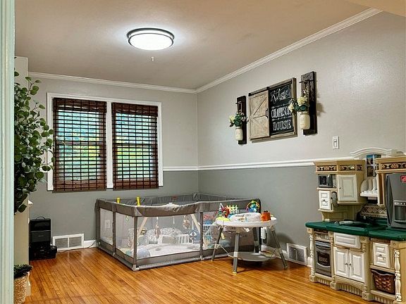 - Den, Separate/Formal Dining Room, Eat-in Kitchen, Separate/Formal Living Room, Living/Dining Room, Natural Woodwork, Bedroom on Main Level, Main Level Primary