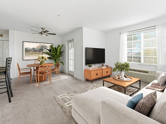 You'll fall in love with this fabulous ranch-style end unit with private covered entrance! Clean & move-in ready just in time for the holidays! Open floor plan with 2 bedrooms (each offers a walk-in closet) & 2 full bathrooms! The kitchen promotes lovely maple cabinets, a brand-new range & microwave, an upgraded spray faucet, a breakfast bar & nice pantry~The living opens to the eating area with French doors leading to the private covered patio with an exterior closet for extra storage~The spacious master suite features a huge (5x9) walk-in closet & private en suite bathroom~Other recent improvements include a new hot water heater, 2 new toilets, 2 upgraded multi-function rainfall shower head attachments, a newer stacked washer/dryer unit & a newer wall unit (heating/cooling unit)~Enjoy maintenance-free living, community clubhouse with exercise room & outdoor pool, a nice park, basketball court, volley ball & bike path/trail~This unit is located close to the 1-car detached garage, designated parking space & mailbox~The roof to the building was replaced in 2020~Convenient location, close to shopping, dining, school, water park & much more!