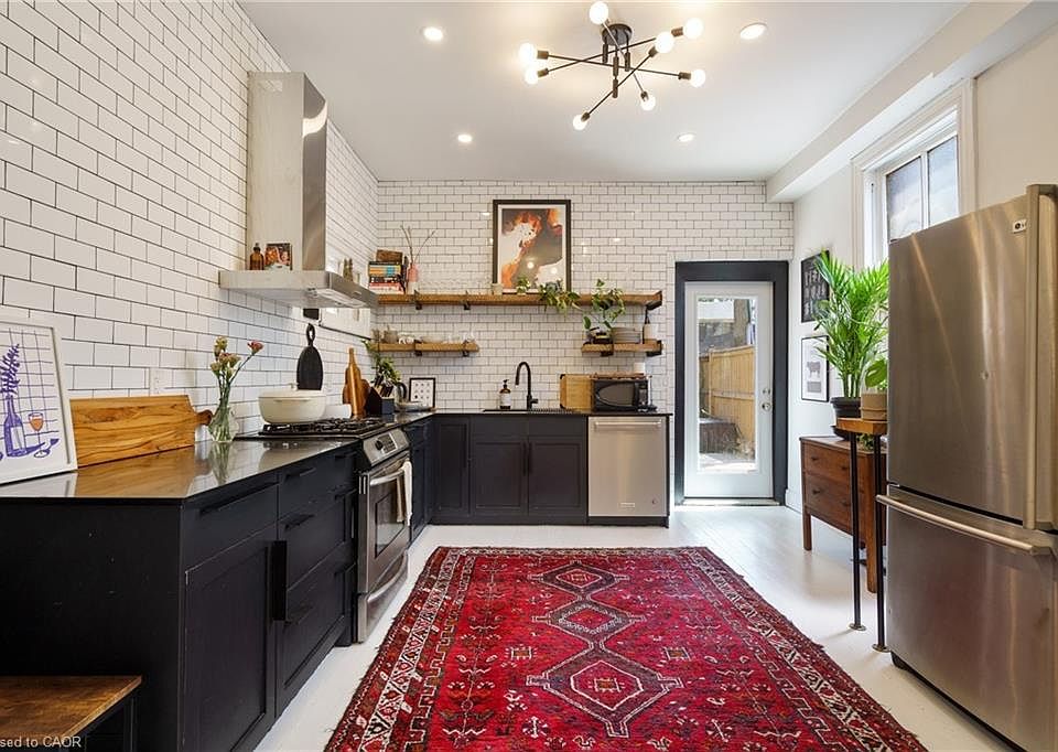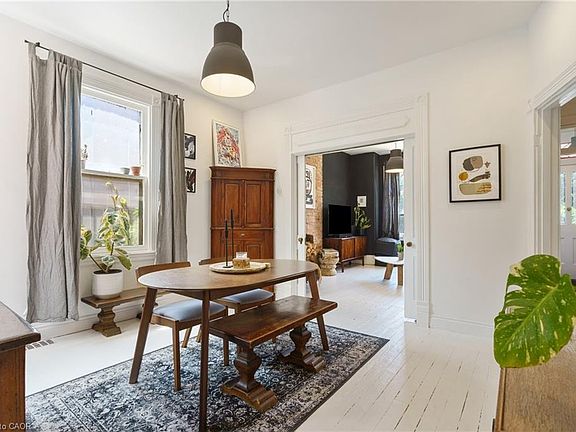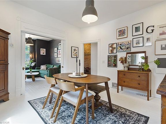 Hard to ignore charm: Exposed brick, original tongue-and-groove pine floors, restored doors and hardware, detailed millwork, soaring ceilings, and industrial-chic finishes. The spacious Dining Room flows into a bright Living Room with a decorative original fireplace. The chef’s Kitchen stuns with floor-to-ceiling subway tile, quartz counters, reclaimed slab shelving, and access to a backyard oasis. Upstairs, the Primary Bedroom with balcony feels grand yet cozy, while the middle Bedroom makes a perfect office with a huge closet. Bedroom-level Laundry leads to a stunning bathroom with marbled walk-in shower and built-in seating; an additional bathroom features a luxurious soaker tub. Every detail blends casual comfort with upscale design. The third level offers a versatile attic-turned-bedroom (with spray foam insulation professionally completed), plus rear unfinished attic space. Below, the walkout Basement includes storage and a roughed-in bathroom. Updates include: Custom shed (2024), eaves/flashing (2022), backyard fence with hidden laneway gate (2021), AC & furnace (2019), and full roof, plumbing & electrical (2017). Bonus: Catharine St N is a one-way toward Cannon, making it quieter than you'd expect. Even better in person—don’t miss this!