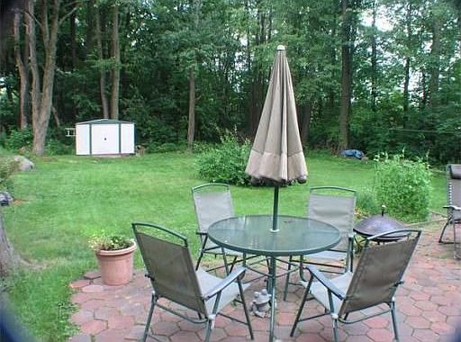NEAT and NICE! This home offers a spacious great room with beamed ceiling, cherry floor, ceiling fan, and pellet stove connection. Hot tub with its own enclosure off great room. Large kitchen has been updated. It has lots of cabinets and opens to sunny dining room. Stove, refrig and dishwasher remain. MBR has double closet and skylight.. Large front porch. Recent 2-zone BB heat. 200 amp. circuit breaker panel, thermal windows. and vinyl siding. Private patio overlooks shaded backyard. Great value. Come look!