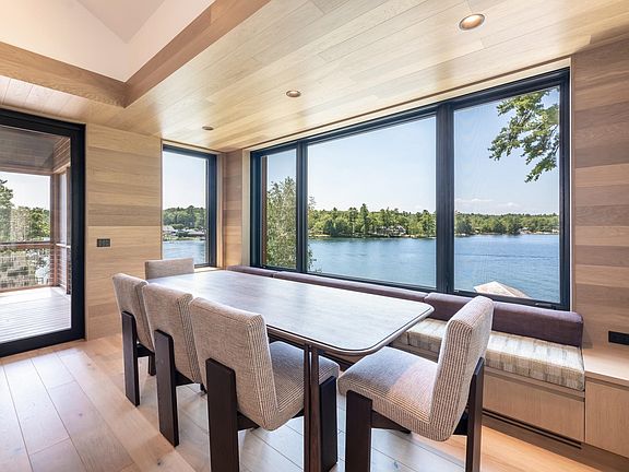 This 2025 Governor’s Island masterpiece designed by Hutker Architects and constructed by Wood & Clay reflects timeless design and exquisite craftsmanship. Features include western red cedar siding with shake roof, 3-car garage, expansive Marvin windows, European white oak millwork, smart-home systems, radiant heat, interior and exterior sound system, and stunning custom finishes. The main level offers soaring ceilings, chef’s kitchen with La Cornue range, Thermador appliances, Galley sink, lakeside dining area, and a primary suite with floor-to-ceiling glass, spa-inspired bath, and direct walkout. The lower level offers a lakeside bedroom, bunk room, office/den, wet bar, second laundry with dog-wash, and slate floors. It is also a wellness retreat with hot stone & infrared sauna, gym with yoga wall and cork floor, and wet-room bath with soaking tub and lake access. Outdoor living is extraordinary with a screened porch featuring a cathedral ceiling, Ipe decking and gas fireplace, covered patio with sun shade, wildflower gardens, extensive hardscaping, hot tub & cold plunge Soake pools, cedar shower, and a three-slip deepwater dock with breakwater, two covered slips, and massive Ipe decks. Governor’s Island residents enjoy a lakefront clubhouse, tennis and pickleball courts, beaches, playground, walking trails, and a vibrant community. This is an opportunity to own one of Lake Winnipesaukee’s most significant estates in New Hampshire's most exclusive lakefront enclave!