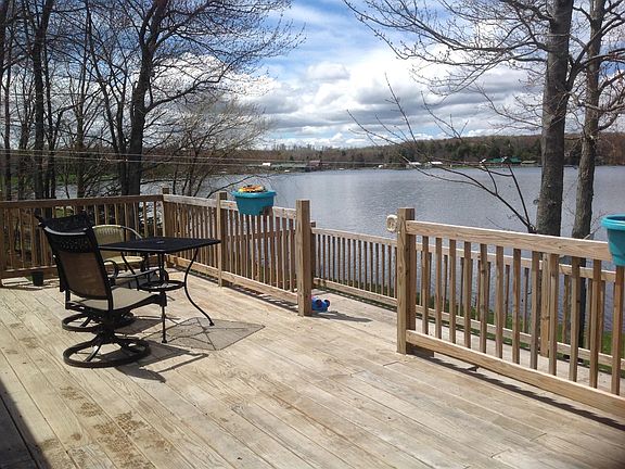 Enjoy year round living on a private 90 acre lake. State forest within walking distance, hiking trails, snowmobile trails, great fishing. Sliders open to a new two tiered entertaining deck that over looks lake. New 16x16 dock. Dog friendly all fenced yard and doggie doors. 2 car heated garage, new vinyl siding, new doors, new windows, new metal roof, new furnace and air conditioning. Back up generator runs whole house and garage. Fruit trees and nice landscaping.