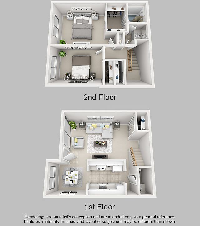 Townhouse features a large 1,050sqft floorplan with a half bath and side-by-side laundry downstairs. Large open kitchen with dining and living room. Upstairs features two over-sized bedrooms and a full bath. Unit also boasts dual-pane windows and central heat and air!