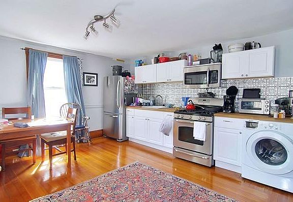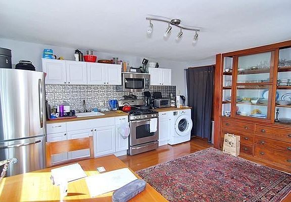 Sunny two-bedroom apartment in a charming, and well maintained three-family house, Directly off the VFW Parkway. Close to shops, restaurants, Jim Roche Community Arena, skating rink, Millennium Park, Home Depot and the VA hospital. On or near the 36 and 52 bus lines and the commuter rail. Includes heat and hot water. Extra -large eat-in kitchen and spacious living room on first floor. Two large bedrooms with large and plentiful closets, office area and bathroom on second floor. Hardwood floors throughout. Kitchen is equipped with lots of storage, counters, cabinets, shelves and drawers and a washer and dryer. Ceiling fans throughout. Small private yard for gardening, BBQ-ing and enjoying. Off street driveway parking and plentiful non-permit on-street parking. Experienced and responsive landlord. No smoking or pets allowed on the premises. Good credit and solid verifiable income required.