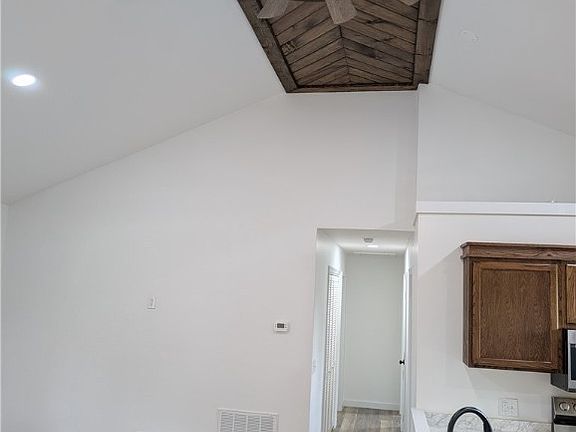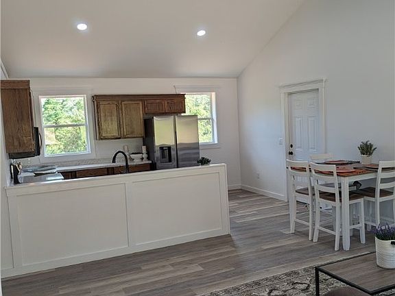 You will love coming home to this beautiful, low maintenance, mountain home with timeless exterior materials, brick & 50 year metal siding & metal roofing. The first thing you'll see are big beautiful wooden beams peaking over the front porch that wraps around to a private open deck on the back. An excellent place for your morning coffee or al fresco dining n the evening! A side door onto the deck makes it easy to go from kitchen to the deck. The first thing you'll hear is the water fall in the front yard! Very relaxing to listen to the sound of the water flowing from pool to pool. Once through front door from the covered front porch the crisp and clean finishes invite you to the spacious living, dining room, kitchen combo. The wood cabinetry matches the wood on the cathedral ceiling & draws your eyes to the attractive & effective windmill ceiling fan. The common full bath has a tub and excellent storage on the custom built-in shelving. Your laundry is on the main floor hallway, shortening the process to wash, fold & put away. The Primary bedroom has a spacious en suite bath, with more custom built-in shelving. The 2nd bedroom would make an excellent office, with windows overlooking only the peaceful 3 acre back yard & woods. After a fire, the new owner has completely rebuilt the home and the tax office gives it a build date of 2025. All new electrical, plumbing, HVAC, insulation, walls, floors, ceilings, paint, appliances, fixtures, lights, everything except the foundation, 8 roof trusses and 2 windows. The seller chose to insulate between the walls as well for a sound barrier so stream away on your lightning fast Skybest Fiber Optic internet after the morning people have turned in for the night. The Heat Pump has a 10 year warranty, the septic tank was just pumped. The walls of the Tall basement, approximately 11' high, are painted white and LED lighting makes this an excellent place for projects, bring your ideas! Yard equipment will easily fit through the large swinging door or there is a nice level area to the right of the driveway that would be perfect for a garage. The acreage is a mix of open and wooded land, you could find a nice garden spot, collect firewood and make a fire pit. The deer & other wildlife make regular trips through. It is such a treat to see the young family, buck, doe and fawn, from the back deck and so easy to slip into the kitchen to refill your favorite beverage. Being at the end of the road provides a peaceful & safe location. Having 3 private, unrestricted acres gives you options to build that workshop, fence in a few animals, build a mountain bike trail, or just watch the wildlife and enjoy the cool mountain air on your little piece of Heaven. It is new and ready for you with land to build your dreams on. Call for an appointment. The seller is motivated, let's make a deal TODAY!