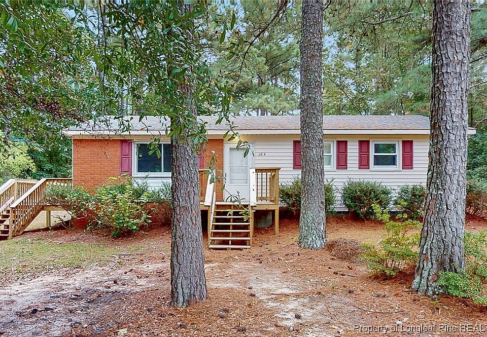 Nestled among the pines is where you will find this cozy 3 bedroom 2 bath Ranch style home with modern updates. The private drive off of the neighborhood street leads you up to your home sweet home with all of the cottage feels you've hoped for. 164 Happy Valley offers LVP flooring throughout, granite countertops, stylish stainless/black appliances to start. You'll love the open floorplan of the livingroom, kitchen, dining areas. Newer (2023) decking outside is perfect for lounging after a long day at work. Make Happy Valley yours today and make home where the heart is again.