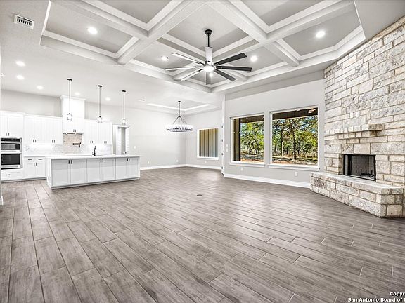 OPEN SAT-SUN 1-3 PM 15-16 NOV....*BRAND NEW & MOVE-IN READY* in Hondo Ridge Subd off CR 321..A Nearly 2800sf Ranch Style Hm w/Lots of Extras' on a 1-Acre lot w/No Immediate backyard neighbors...No City taxes & Low 1.74% Tax Rate in Wilson County,La Vernia ISD...Very Open Floorplan w/Raised Deco Ceiings,Lots of Crown Molding & Recessed Lighting,Plank Style Flooring Thru-Out (No Carpet) The Oversized Picture & Transom Windows Create a Lot of Natural Lighting....Eat In Country Style Kit that Overlooks The Living & Dining Rm has Xtra Lg Walk in Pantry,Farmers Sink,Custom Cabinets w/Hardware,Pendant Lighting,Pot Filler,Decorative Backsplash,Cooktop,Custom Vent a Hood & Blt in Oven/Micro...Split BD plan Main Bathroom has Soaker Tub,Walk in Tiled Shower & 2-Huge Walk in Closets w/xtra shelfing...1 of the Other Bedrooms has It's Own Bathroom & Walk in Closet...(Possible 2nd Main Bd) The Other 2-Bd's also have Walk in Closets...Laundry Rm has Upper & Lower cabinets...Living Rm Has Beamed Deco Ceiling,2-Lg Picture Windows & Rocked Corner Fireplace...Huge Outdoor Living Area/Covered Patio w/Tiled Flooring,Fireplace & Beaded Board Ceiling....Side Entry Finished out Gar Has Epoxied Flooring,Pulldown attic staircase,Radiant Barrier Roof Decking,Storage Room & Water Heater/Water Softener closet...Call 4 Detailed Packet of Info...COUNTRY LIVING..Local Builder
