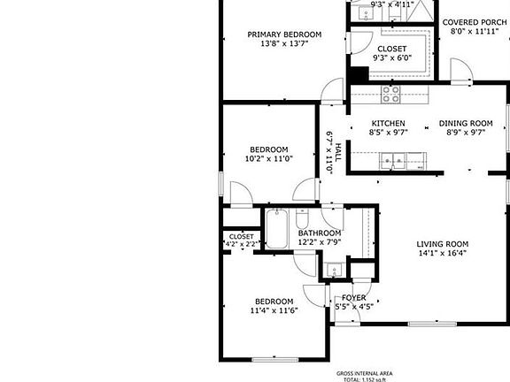- Total interior livable area: 1,200 sqft