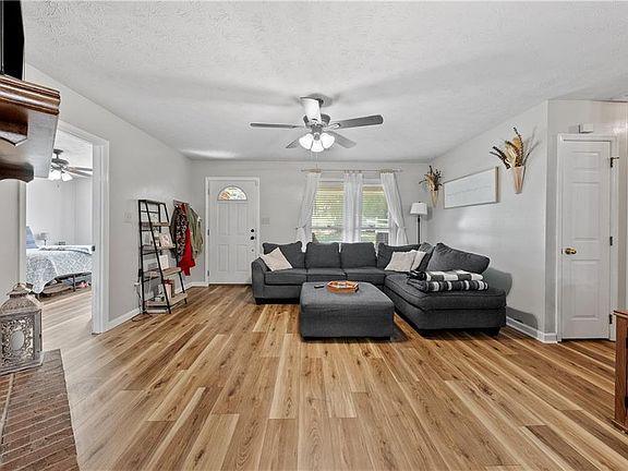 What a great home! From the beautiful new floors to the brand new real wood butcher block counter tops, this home is spectacular. Enter into the large great room with dining area and brick fireplace, fresh paint and LVP flooring. Updated kitchen with wood-look porcelain tile flooring, freshly painted cabinets, new cabinet hardware, new stove and new vent hood. Many new light fixtures and water fixtures throughout the house. Behind the dining room is another sitting area that can be used as an office, playroom, additional dining - whatever you need. Master bedroom features a large walk-in closet. Split bedroom plan with the secondary bedrooms and hall bathroom on the left side of the house. There's a screened in back porch great for enjoying morning coffee or evening cocktails. It overlooks a deep back yard that extends beyond the tree line. New Carrier HVAC system installed in 2023. Washer, dryer and microwave are included!