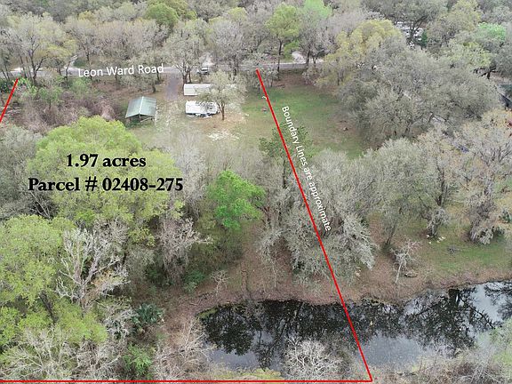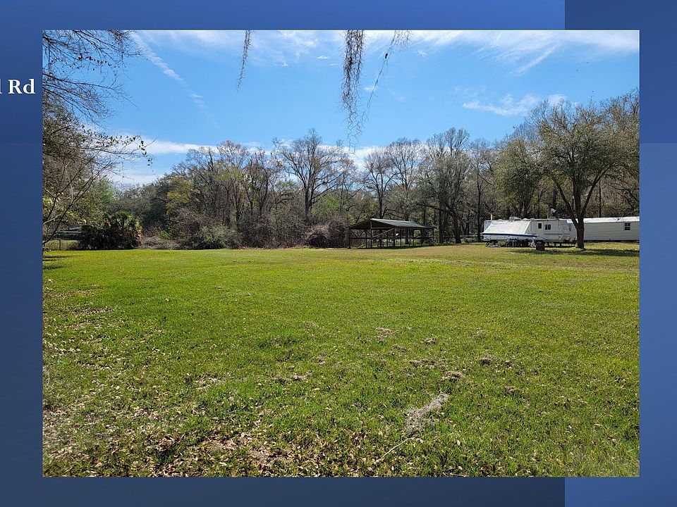 Nearly 2 acres of land with a pond in the back for quiet country living. Beautiful green grass with large oaks for shade makes this a very lovely place to call home. Fenced on 3 sides with a drive through gate. Back side of the property at the pond is not fenced to allow access to the pond. Huge shade trees in the front with open area near the back make this a gorgeous piece of property. Some trees around the pond but room to fish from the bank. 2021 - 12x50 metal building included. Can be finished out with utilities hooked up for living area. Building is currently empty and no utilities connected. Older RV on site does have power and water connected and is included in the sale. Pole Barn already in place for you to park your vehicle or yard equipment. Or turn it into an outdoor entertainment area with the grill, fire pit, cornhole, etc. Natural Gas line easement comes through the property. Can drive over it, grow a garden over it, mow over it, etc. Only restriction is that you can can't build 60 ft on either side of the easement markers. Most of the property is in X flood zone (no flood zone) - part of the property is in AE flood zone (regular flood zone). Metal building and RV are not in the flood zone. The right side of the property has a low corner and the back near the pond is the flood zone areas. Sewer is available but currently not installed.