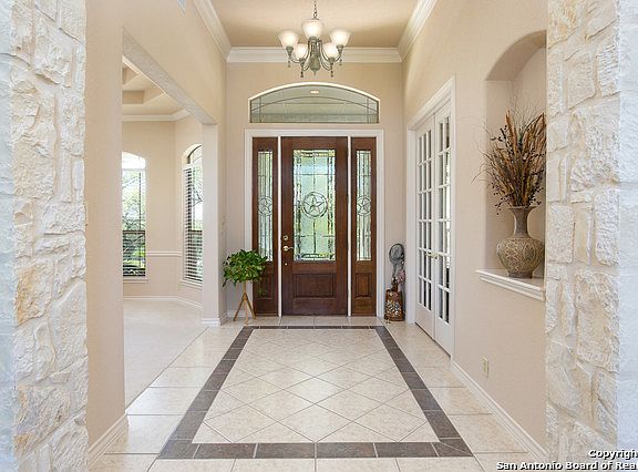 NEW PRICE! $545,000 Beautiful home in River Crossing. HILLTOP VIEW on quiet cul-de-sac & backs to 1200+ acre ranch for privacy. 3/3 w/lg. study. Luxury master suite w/windows overlooking pool & wonderfully landscaped backyard. Backs to east. Living area centered around gas fireplace has huge windows w/views of backyard retreat. Island kitchen w/gas cooktop! Frig conveys. Built in gas grill in back yard. 3 car garage. Wrought iron fence. Private river park. METICULOUS! A Must See!