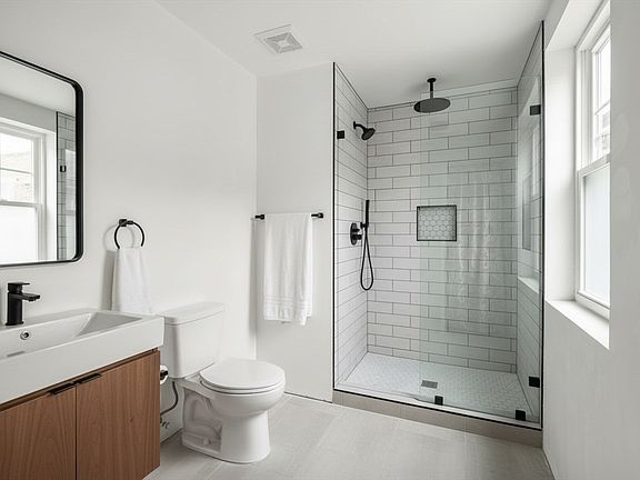 Ceramic tile showerDedicated laundrySecluded backyard deckRestored original exposed beamsQuartz countertopsEn-suite bathroomWalk-in closets