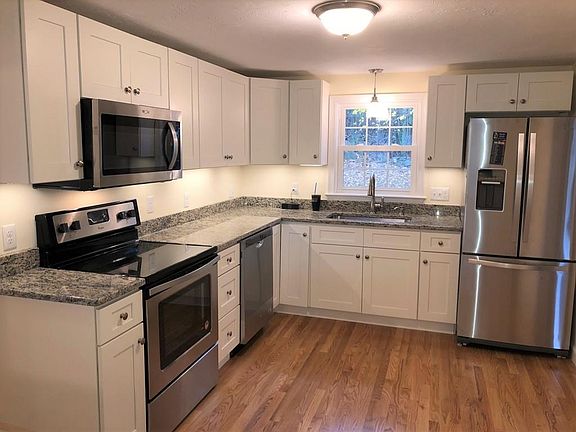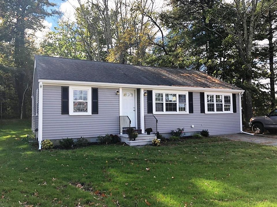 Beautifully renovated ranch with countless updates. Features include new kitchen (studs out) with new plumbing, new up-graded white shaker cabinets, new granite counters w/under cabinet lighting, Whirlpool stainless steel appliances, new bath (studs out) with ceramic tile bath & flooring, new hardwood floors in kitchen & master bedroom, gleaming refinished hardwood floors in all the rest, new interior doors, mud room with ceramic tile flooring, new and updated windows, illuminated tray ceiling, new vinyl siding, new gas baseboard hot water heating system (state of the art), new electrical service, new gutters and new 3 bedroom septic system. Private and manageable freshly seeded back yard. Nothing to do but move in! Large dry basement with tremendous potential to add additional living area. Great commuter location, close to shopping, rt 495 & Franklin/Forge Park Commuter Rail. 100% financing avail. Value Range Pricing, Seller to entertain offers between $250K & $275K