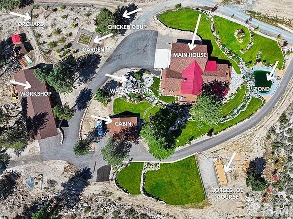 Welcome to Jobs Peak Estate. This is a rare opportunity to own this never before listed luxurious Mountain Estate. Nestled on an exclusive 10.35-acres in the foothills of the Sierra Mountains with majestic views of Jobs Peak, tucked in the mountains overlooking the picturesque Carson Valley, cornering Toiyabe National Forest, with a year round creek and all with the ability to Ski home from Heavenly Ski Resort. Minutes to Lake Tahoe, multiple ski resorts and with the tax benefits of owning in Nevada., The crown jewel of this property is a lavish 2019 custom-built home spanning 11,014 square feet. This home is a masterpiece boasting 5 bedrooms (3 en suites) and 5.5 baths... Every detail has been carefully curated to provide an unforgettable experience. With the breathtaking backdrop of Jobs Peak and the blend of modern luxury and rustic charm you will never want to leave. The great room has 32 ft. ceilings and a massive fireplace leading to a dream kitchen with a 30ft. island, multiple ovens & dishwashers, ice machine and cabinet space for every kitchen gadget. The dining area turret has a custom crafted wood ceiling with grand views off the mountains and valley. Luxurious primary bedroom with crystal chandelier, heated floors, surround sound, a massive fireplace, and steam shower. The primary bedroom offers stunning mountain and valley views, marble, and 2 huge custom closets and vanity, creating an exquisite space for all your needs. Step into a world of sophistication and entertainment as you explore the private speakeasy inspired back lit onyx full bar and lounge with game room, and a state-of-the-art movie theater within the confines of the main house. For those seeking relaxation, an indoor pool and hot tub provide the perfect oasis. Or if you need a little exercise you can hit the private gym equipped with a tonal, treadmill, rowing machine and bike. Adding a touch of history, a quaint 881-square-foot Pine cabin stands proudly on the estate. This original rustic 1957 structure, complete with 2 bedrooms and a loft, invites you into a bygone era. Great for a mother-in-law, additional guest home or property manager. As you step outside, you will find yourself immersed in a meticulously landscaped haven. The property is bordered by a creek and has 2 acres of manicured lawn to provide an expansive canvas for your outdoor pleasures. The large garden, chicken coop and orchard can help sustain you year after year. The landscape is adorned with several waterfall features, a serene pond, and the soothing sounds of nature, creating a tranquil ambiance for your celebration. The outdoor experience is equally enchanting with a wrap-around deck showcasing the expansive waterfall features. Enjoy natures beauty. Horseshoe pits and a golf tee provide additional entertainment, inviting you to relax and enjoy the breathtaking views. Enhancing the atmosphere, an outdoor stereo system fills the air with harmonious melodies. As the day turns to night, two fire pits invite you and your guests to gather under the starlit sky, fostering warmth and camaraderie. Ample parking and space for your cars, boats, RVs and more. The main home has a 5 car garage and the detached shop is 4,500 sq.ft with a lift and multiple bays. Think off the grid if you need to. The home has a Geothermal Heating and Cooling system, Hydro Electric and a private well and 2 septic systems. This home was built by a local custom home builder for his personal residence and is a must see! Horses allowed as you have no HOA! Need more land or more home opportunity? Additional attached 8 acres with 3 sub-divided lots ready to build your estate further can be purchased at a separate price. Not listed.