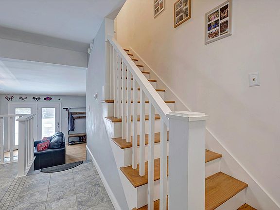 End unit condo, recently gutted and renovated, situated next to Park Ridge East Park (10 minutes to IU Campus,5 minutes to Target)Quartz countertops, under-mount sink, newer everything in this large eat-in kitchen which is raised and separated from the living room by a beautiful custom-made balustrade. This opens up to the vaulted ceiling living room which has hardwood, oak floors, fireplace and french doors that open to the private, gated patio. Main level has a new half bath. Up the oak staircase there are two very comfortable bedrooms with oak floors and a generous bathroom with rain shower head. From the main living room, there is a second staircase that leads to a completely dry basement. There is ample built-in storage, high end, stackable washer and dryer, second freezer and HVAC. A new $5000.00 sewer pipe and water proofing has been installed. 2 designated parking spaces as well as guest parking in private parking lot that is protected by a new, wood fence. Fantastic HOA. Everything is so well taken care of. They even shovel the steps up to each condo and leaf blow the patios! Top notch service.