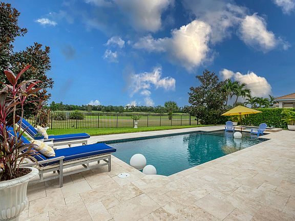 Live luxuriously & comfortably in this single-level Beaumont model with an ultra private homesite in the resort-style gated community of Jupiter Country Club. **FULL GOLF MEMBERSHIP is available immediately to the buyer of this home.** There is currently a long 3-5 year waitlist for this sought-after level of membership. (New owner can downgrade to social/club membership.) This home can be offered turnkey furnished-just bring your toothbrush! The open concept floor plan boasts 4 bedrooms, 3 1/2 baths, a flex room/den and a 3 CAR GARAGE. Privacy abounds from this prime location offering sweeping lake, fountain, golf course & tree-lined views with no homes in the rear. Oversized reverse-pie shaped corner lot with an enormous side yard. This home is beautifully appointed and provides all the essentials of easy Florida living with impact glass windows, solid CBS construction & natural gas. Gorgeous designer upgrades include white oak hardwood flooring, plantation shutters, custom closets, built-in drop zone & stylish light fixtures. Immerse yourself in the ultimate outdoor oasis with a summer kitchen and an expansive saltwater heated private pool & spa surrounded by travertine pavers and lush tropical landscaping. The pool area was completely revamped with a new pebble pool finish, a large sunshelf, and a relaxing spa with a custom waterfall feature. Relish the colorful sunsets and the panoramic views from the covered patio or pool deck. Gather in the open concept great room offering lovely views of the turquoise pool, lake & golf course. Loads of natural light flows into the home through the large impact sliders and transom windows. Channel your inner chef in the kitchen featuring an expansive center island with seating, dual-temperature wine refrigerator, 5 burner gas cooktop, dual wall ovens and granite countertops. The primary suite is truly a retreat featuring two walk-in closets with built-ins and a spa-like primary bath with dual vanities, a large soaking tub, and walk-in shower with frameless glass enclosure & river rock flooring. Your guests will rest comfortably in the 3 spacious guest bedrooms. One is adjacent to the full cabana bath. The other 2 share a Jack-n-Jill bath. A separate powder room for guests is located near the flex room. The flex room/den is perfect as an office, media room, exercise room or a convertible 5th bedroom. Jupiter Country Club is a luxury gated community conveniently located within close proximity of I-95 and the FL Turnpike, pristine beaches, world-class shopping, restaurants, parks & nature preserves. Club amenities & events offer a plethora of social opportunities and include a Greg Norman Signature 18 hole golf course, 2 resort-style pools, the Sway restaurant & bar, a state-of-the-art fitness center + pilates reformer, yoga, barre (& many more) group fitness classes, massage/facial treatment services, tennis, bocce ball, pickleball & basketball. Members enjoy reciprocal privileges to Invited Clubs worldwide. Live your best life here!