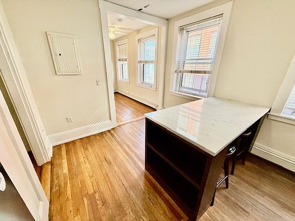This North End two bedroom, one bath apartment features hardwood floors, an open living space, and a kitchen with gas cooking and a dishwasher (note: no oven). The layout includes one queen-sized bedroom and one full-sized bedroom, both filled with natural light. Laundry is not available in the building.