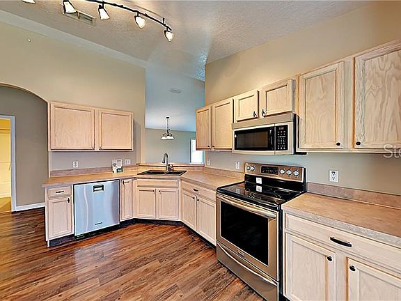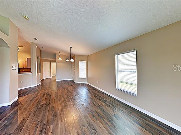 Charming one story home with 2 BR 2 BA located in 55+ community in Kissimmee! Fresh interior paint. Formal dining and living room upon entry. Spacious kitchen accents breakfast bar and stainless steel appliances. Master bedroom offers large walk in closet and private bath. Backyard with open patio perfect for entertaining guests. Restaurants, pools, fitness center and more amenities included! Close to local parks and schools. Minutes from shopping and dining. Come view this home today!
