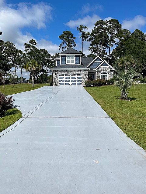 You'll love this open floor plan situated in the heart of Sunset Beach, sitting on one of the largest lots in Sea Trail development. Welcoming you to the property is a massive front yard with an extensive oversized driveway offering an abundance of parking for your guests. The property is nestled up to the golf course and offers a fenced in backyard. Exterior features of the property consist of James Hardie siding with stone veneer on the front, along with an irrigation and drip line system throughout the property. With a stone back patio equipped with a gas fire pit and a gas grill hook up you’ll be ready for your entertaining needs. Welcoming you into the house is a wainscoted foyer that continues through the hallway and into the dining room. Facing east one can enjoy their morning routine while watching the sunrise in the office located in the front of the house. Stepping further inside the open floorplan concept offers the living and dining room along with the kitchen. The kitchen is equipped with a 5-burner gas cooktop and pot filler directly above. Offering an abundance of storage the cabinets feature quartz countertops. Stainless steel appliances cascade throughout the kitchen. The living room features one (1) of two (2) gas fireplaces in the house. Elegantly surrounded by stone the mantle flows into shiplap to the ceiling will have you feeling cozy on the cool fall nights. Also equipped with surround sound you’re ready to catch the big game or host the next movie night. Featuring a massive four (4) glass panel telescoping slider door you enter one of the houses best feature, a fully enclosed sunroom offering more square footage. With floor to ceiling stone you will find the second gas fireplace and cable hookup in the sunroom. The sunroom is accessible through the slider, the backyard or the master bedroom. Located on the first floor the master bedroom features a tray ceiling, recessed lighting and a walk-in closet with shelving. The master bath features; a zero entry fully tiled shower, a free-standing tub and a vanity with his and her sinks.