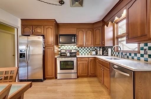 Available July 1 Single family 3 bed 2 bath cape style home located in Winchester. This home sits on a large beautiful corner lot across the street from Vinson Owen School. Large front to back living/dining room with fire place. Renovated fully applianced kitchen with stainless steel refrigerator, range with built in microwave, and dishwasher.Three bedrooms that are all good size. Large back 3 season porch that attaches to breezeway with access to single car garage. Driveway can fit 2-3 more cars. Hardwood floors throughout kitchen, hallway, and bedrooms. Large private yard. Close to Winchester Hospital, Lahey Clinic, Vinson Owen Elementary School, and Commuter Rail Station with train to North Station in 13 minutes. . Good credit, rental history, and employment verification required. First, Security, half fee Please call today for showing. Showings start June 1