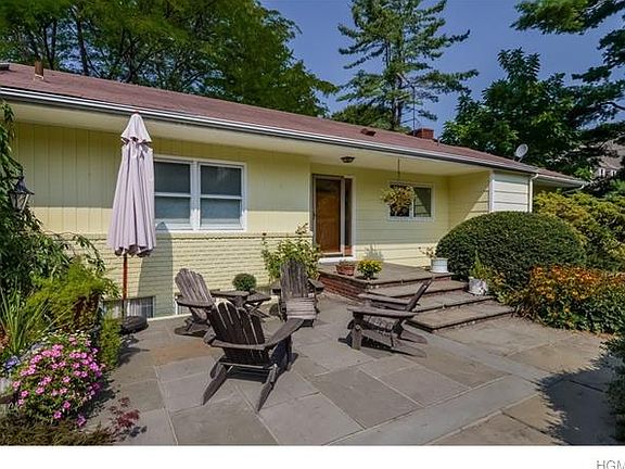 Sprawling Ranch w/Finished walk-out Lower Level w/huge Family Room/built-ins/brick Fireplace & 4th BR/Bathroom suite. Large Master Suite with huge custom WIC/new Master Bath w/vaulted ceiling/skylight/marble. BR #2 w/private balcony. Updated Hall Bath in 2000 w/hand painted Spanish tile & Jacuzzi. Hardwood flrs on main level including under new wall-to-wall carpet in BRs: Open floor plan--Updated kitchen w/maple cabinets/stainless steel appliances/expansive Breakfast Bar open to Dining Rm & large Living Rm w/tiled Fireplace. Private Office on main floor. Updated windows.2 Furnaces.C/A plus whole house attic fan. Invisible Fence. Close to Sleepy Hollow Country Club, Scarborough Train Station & shops. Front & rear flagstone patios. Garden Shed.Attached 2-car garage plus 2-car carport. Large driveway. Expansive yard. PR mirror excluded. House is well-maintained but being sold "As Is." Taxes/SF per town. Pls Vfy.