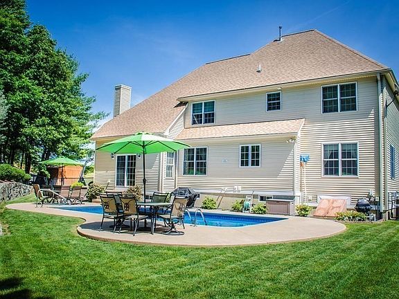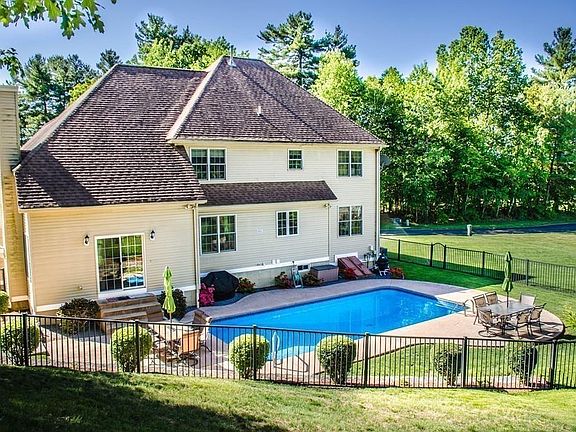 Saltwater Inground Pool Colonial on Shared Driveway in Berlin. Easy Commute to highways but also relax in your private oasis of a backyard in this impressive colonial home. As you pull up to the home you'll notice the bright green grass watered by your irrigation system. The exterior of the home has a 2 Car garage, storage shed, inviting front porch, an invisible dog fence to keep your pet safe and a patio surrounding your salt water pool. Come inside to find a cabinet packed kitchen that opens to your fire placed living room with soaring ceiling. Also on the first floor is a formal dining room, a cozy den and a dedicated office. On the second floor there is a large master bedroom with walk in closet, and a bathroom with soaking tub and separate shower. Rounding out the second floor is three more bedrooms and a shared bathroom. Other noteworthy features is that its one of the few homes in Berlin with gas hookup. Also has generator hookup and 2 heating and cooling systems.