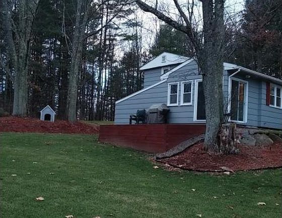 Don't miss this great two bedroom, bath and a half home. Immaculate, private and a great starter home or downsizer home! 1st level includes large living room with pellet insert in the fireplace that will heat the whole house, and eat-in kitchen! Second level shows off 2 good size bedroom and full bath! Bonus room in the lower level can act as office, play room or family room. Let's not forgot the great 3 season room off the kitchen and charming patio off of that. Lots of privacy on over an acre of land. Plenty of room for the kids and the dog! Home is wired for a generator.