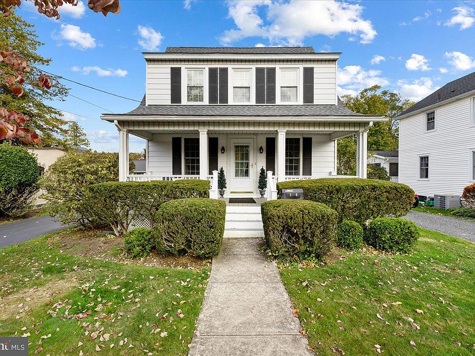 A classic 1930 Colonial nestled on a pretty lot in the heart of Lawrence Township awaits you. From the moment you pull up the mature tree lined street, and turn into the extra long private driveway that ends with a detached 1 car garage, you will know you are home! The front sitting porch invites you to come in and explore some more! Inside, a sunny living room features gleaming hardwood flooring (throughout) and a picture perfect staircase! Holiday gatherings are a pleasure in the banquet sized dining room that acts as the heart of the home as it conveniently opens to the living room, eat-in kitchen, and the family room addition that is flooded with natural light from the oversized bow window. A full bath and side entrance to the driveway complete the first floor. Up the spindled staircase you'll find 3 generously sized bedrooms, including the front to back primary bedroom, which boasts wall-to-wall closet space! Also on the second floor is a spacious hall bath which features a jetted tub and dual sink vanity with linen storage! The custom detailed study with built-in desk and cabinetry provides access to the walk up storage attic - ready for all your seasonal storage needs! The full basement, complete with laundry area, and the additional backyard shed provide all the additional storage you will need! A pavestone patio and fenced in yard complete the exterior spaces! Welcome home to 164 Roxboro Road!